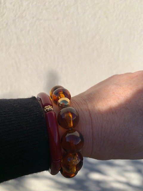 bracelet perle ronde acrylique- boule doré, monté sur un fil élastique